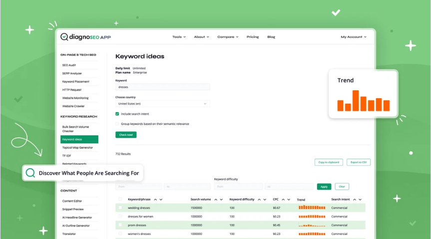 Knowing what works for others helps you plan better. Diagnoseo makes this simple. Put in a competitor’s site, and it shows their best keywords. I used this once to help an old post. It worked — now I rank with my competitors.