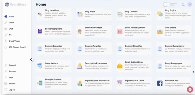 WordHero is an AI tool that helps you write all kinds of things. I’ve used it for social posts and product blurbs—it saved me time. You can write blogs, emails, ads, sales pages, poems, and even songs.
